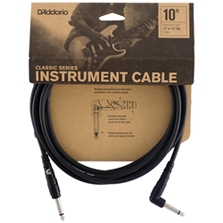 Planet Waves Classic Series instrument cables provide the ultimate in quality and value. The right angle plug is a great choice for plugging into guitar side-mount jacks and effects pedals.